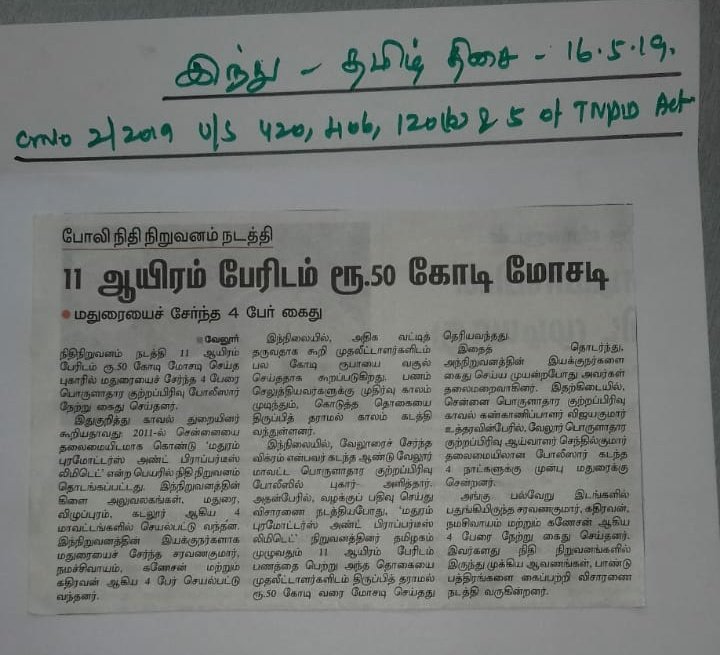 Eow Economic Offences Wing Tamil Nadu Police On Twitter 15 5 19 Another Company Cheating Depositors Eowtnpolice Promptly Registered Fir Arrested The Accused And In The Process Of Attaching The Properties Rbi Anandavikatan Depositorinterest